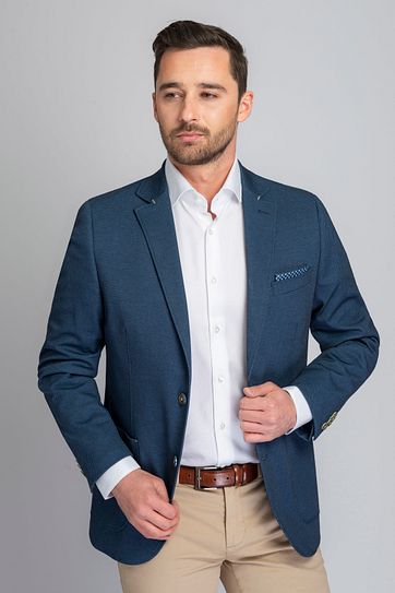 Mit diesem Kiato-Blazer von Suitable sehen Sie sicher gut gekleidet aus. Der Blazer hat eine blaue Jeansfarbe, die durch das All-Over-Design einen trendigen Akzent erhält. Darüber hinaus verfügt der Herren-Blazer über ein zeitloses, gekerbtes Revers, stilvolle Knöpfe, eine Brusttasche mit Einstecktuch, zwei Seitentaschen und drei Innentaschen. Dies macht die Jacke sowohl modisch als auch praktisch.