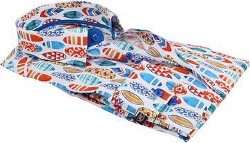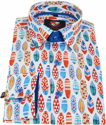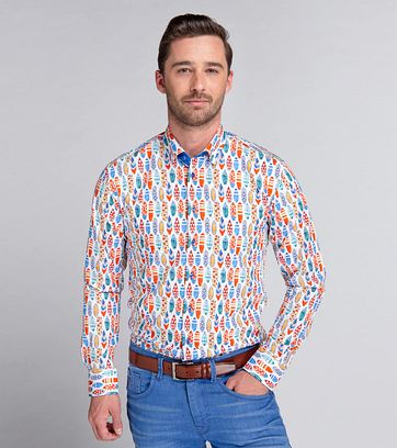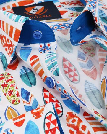 Wählen Sie dieses Suitable Herrenhemd mit einem trendigen Twist. Das farbenfrohe Hemd hat ein Surfboard Muster und ist für einen casual Look einfach mit Ihrer Lieblingsjeans zu kombinieren. Die Slim-Fit Passform sorgt dafür, dass das Hemd tailliert und figurbetont fällt. Hergestellt aus 100% Baumwolle bietet dieses sommerliche Hemd für Herren ein optimales Tragekomfort. Dieses langarm Hemd stammt aus unserer Suitable Kollektion und ist versehen mit einem Down Onder Kragen.