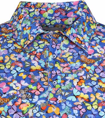 Mit diesem Poloshirt aus der Prestige-Linie von Suitable erhalten Sie ein trendiges Herrenpolo nac Hause. Das lässige blaue Poloshirt mit drei Knöpfen verfügt über ein Allover-Design mit bunten Schmetterlingen. Dies gibt eine fröhliche Note und verleiht Ihrem Outfit eine modische Note.