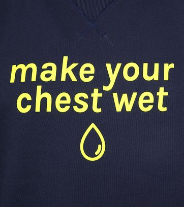 Mit diesem Chest Sweater von Suitable verleihen Sie Ihrem Outfit eine trendige, lässige Note. Der Herrenpullover hat eine zeitlose dunkelblaue Farbe und einen neon-gelben Druck von hoher Qualität mit einem fröhlichen Twist aus. Zusätzlich ist der Pullover mit einem Rundhalsausschnitt und elastischen Bändern an den Enden versehen.