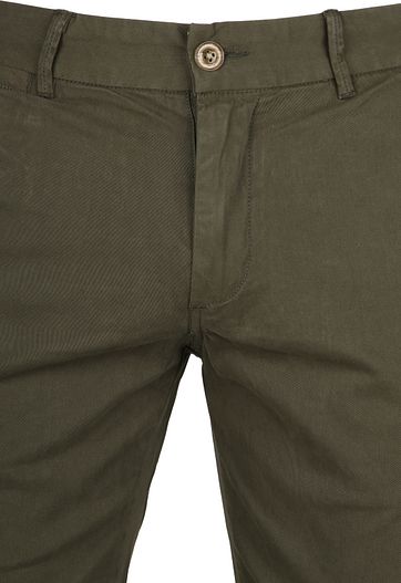 Diese Arend-Shorts von Suitable verleihen einem klassischen Modell eine moderne Note. Die Hose hat eine grüneFarbe und eine feine Twillbindung, die für einen modischen Look sorgt. Die Hose besteht aus einem Chino-Modell mit zwei Eingrifftaschen mit Knopfverschluss auf der Rückseite und zwei Seitentaschen sowie einer Münztasche (Münztasche) auf der Vorderseite.
