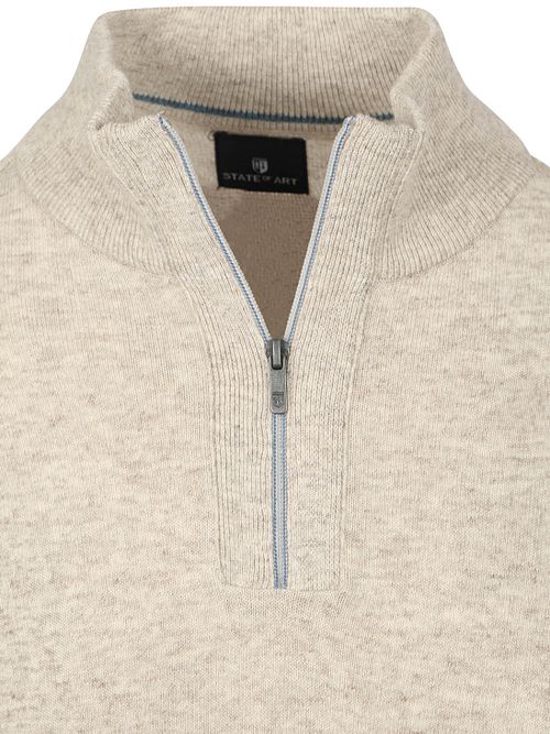 State of Art Half Zip Pullover Wool Blend Melange Greige