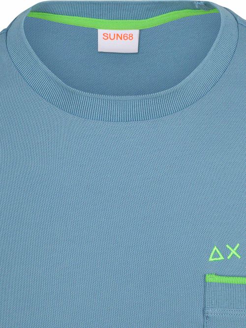 Sun68 Piqué T-Shirt Fluo Stripe Blau Sun68 Piqué T-Shirt Fluo Stripe Blau in der Farbe Blau mit Passform Modern Fit wird aus Baumwolle und Stretch hergestellt mit Einfarbig Design und Kurzarm.Produktinformationen