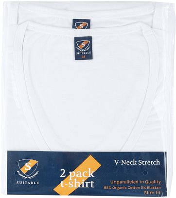 Suitable T-Shirt Weiß Tief V-Ausschnitt Vitaru Stretch 4 Pack